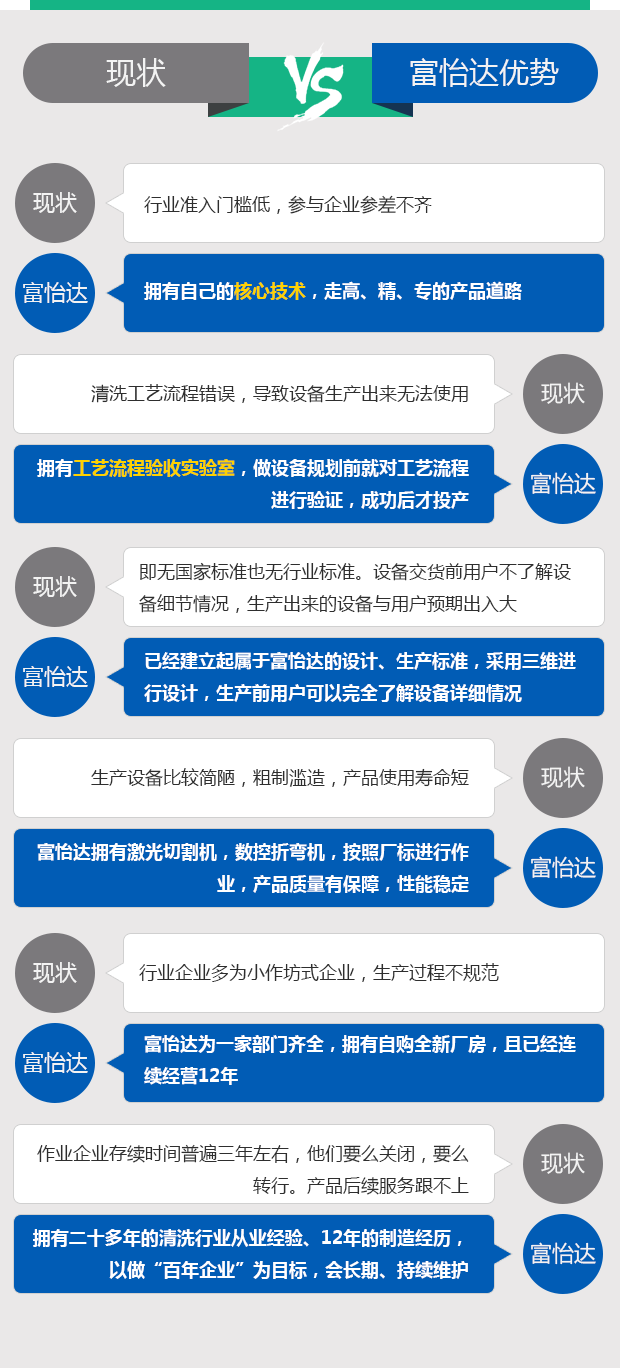 清洗行業(yè)均為行業(yè)專用設(shè)備,目前即無國家標(biāo)準(zhǔn),也沒有形成行業(yè)標(biāo)準(zhǔn),所以設(shè)備是各取所長,富一達的自動超聲波清洗機,通過式超聲波噴淋清洗機、往復(fù)式旋轉(zhuǎn)噴淋清洗機,渦旋式清洗機均按富怡達廠標(biāo)標(biāo)準(zhǔn)進行設(shè)計、制作。