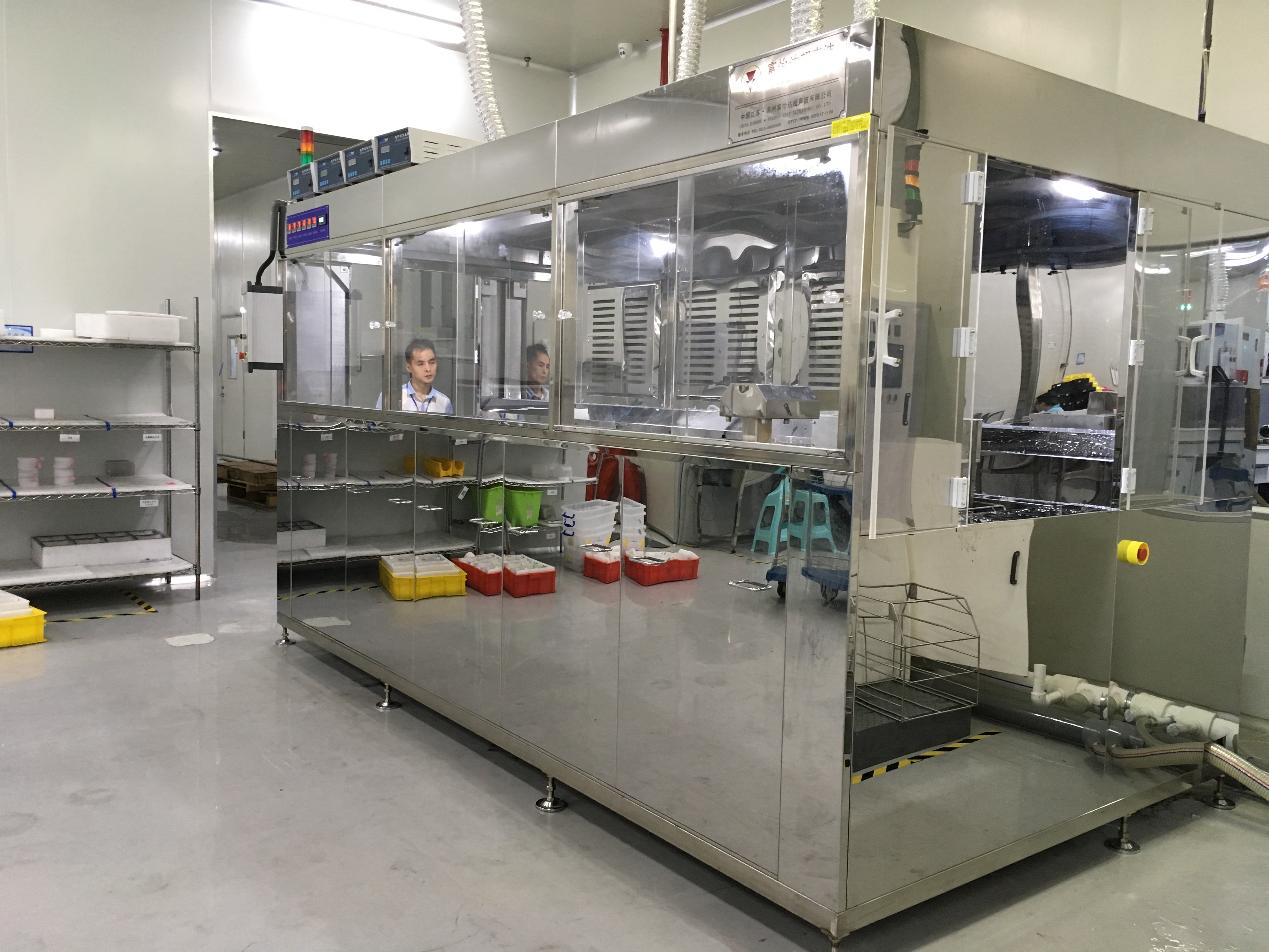 富一達擁有清洗工藝驗收實驗室,配置有28KHZ、40KHZ、80KHZ、120KHZ、200KHZ等不同頻率的超聲波清洗設(shè)備、噴淋清洗設(shè)備、熱風(fēng)(遠紅外)干燥設(shè)備、真空干燥設(shè)備。可根據(jù)用戶不同要求做工藝驗證試驗,后期富怡達還會增加無法潔凈室,并配套清潔度檢測設(shè)備。